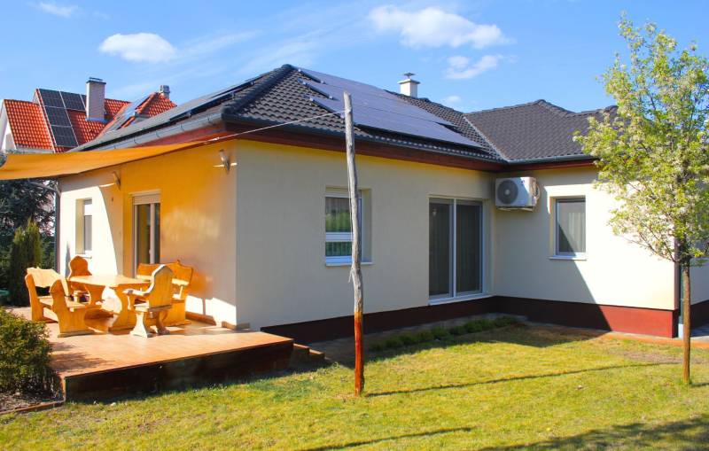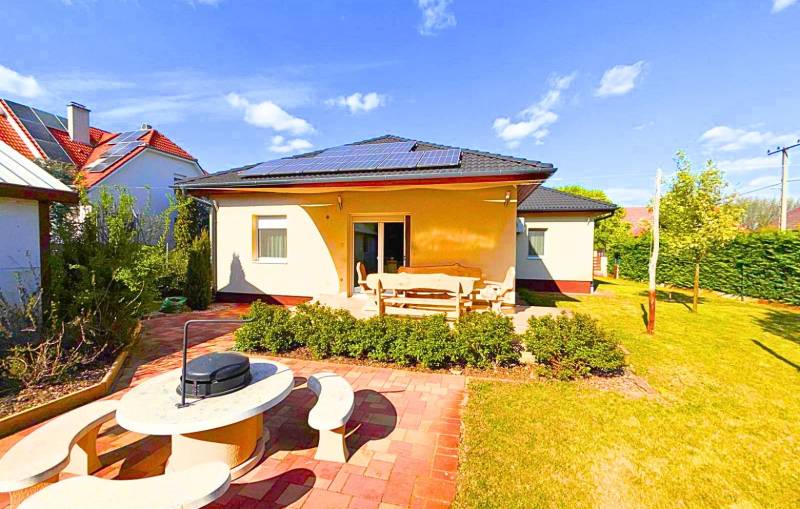 Energiatudatos Álomotthon Alsószéktó – Napelem és Helios rendszerKecskemét-Alsószéktó közkedvelt, újabb építésű részén eladó egy 2020-ban épült, prémium műszaki tartalommal rendelkező, 128 m²-es földszintes családi ház.Az ingatlan tervezésekor a fő szempont a fenntarthatóság, a modern kényelem és a praktikus térkihasználás volt. Ez a ház tökéletes választás azoknak, akiknek fontos az alacsony rezsiköltség és a modern gépészet adta biztonság.LEGFŐBB MŰSZAKI ÉS KÉNYELMI JELLEMZŐK:ALACSONY REZSI: A tetőre telepített napelemrendszer és az elektromos fűtés kombinációja rendkívül gazdaságos üzemeltetést tesz lehetővé.PRÉMIUM GÉPÉSZET: A beépített Helios hőcserélős szellőztető rendszer gondoskodik a folyamatos friss levegőről és az optimális páratartalomról – pollenek és por nélkül.ÚJSZERŰ ÁLLAPOT: 2020-as építés, kifogástalan külső és belső megjelenés, azonnali költözési lehetőséggel.KOMFORT: 128 m² alapterület, 3 tágas szoba, praktikus földszintes kialakítás (lépcsőzés nélkül).PARKOLÁS: saját garázs, plusz parkolási lehetőség az udvaron is egy fedett beállóval.TÁROLÓ: a kertben egy masszív 30 m²-es tároló gondoskodik a nem használt dolgok elhelyezéséről.KERT & TERASZ: Kényelmes kertkapcsolatos terasz, amely ideális a pihenésre. A kert gondozásáról automata locsoló berendezés és automata fűnyíró gondoskodik.ELOSZTÁS:Az ingatlan belső tereit a funkcionalitás jellemzi: a tágas nappali mellett a hálószobák elhelyezkedése biztosítja a család minden tagjának a privát szférát. A nappaliban egy valódi kandalló is helyet kapott, ami a téli estéken kellemes hangulatot biztosít.LOKÁCIÓ:Alsószéktó ezen része csendes, kertvárosias, mégis kiváló közlekedéssel bír. A belváros és az autópálya-felhajtók is percek alatt elérhetőek, a közelben minden fontos infrastruktúra megtalálható.ÁR: 135 M FtAz ingatlan tehermentes, azonnal birtokba vehető!Díjmentes finanszírozási tanácsadás és teljes körű, díjmenteshitelügyintézés. A vásárlás teljes folyamatát végigkísérem.Ha egyszerűen és biztonságosan akarsz vásárolni, ne maradj le!