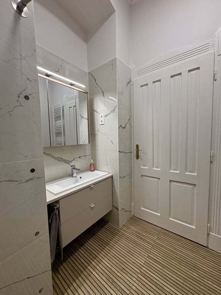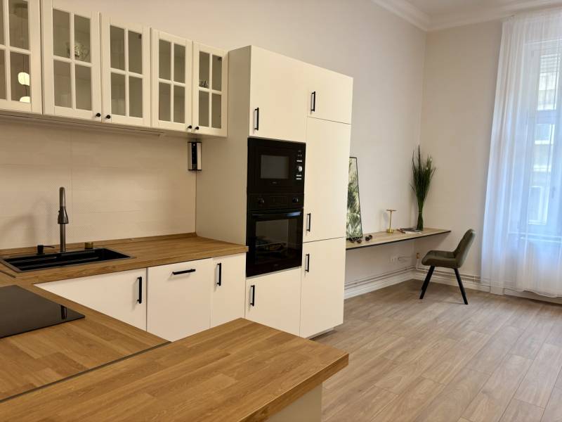 Azonnal költözhető, modern otthon a belváros szívébenEladásra kínálunk a Vas utcában, rendezett, liftes társasházban egy 51 m²-es, amerikai konyhás nappali + hálófülkés, esztétikailag és műszakilag teljes körűen felújított lakást.Az ingatlan praktikus kialakítású: tágas előtér, külön gardróbszoba, hálófülke, hatalmas zuhanyzós fürdőszoba, valamint külön helyiségben található bidés WC. Az ingatlan minden részlete átgondolt, kényelmes és modern életvitelt biztosít.A közel 27 m²-es amerikai konyhás nappali a lakás központja: világos, nagy ablakokkal, jól elkülönített funkciókkal (konyha, étkező, dolgozósarok, nappali). Ideális mindennapi élethez és otthoni munkához is.Főbb jellemzők:-Teljes körű műszaki és esztétikai felújítás-Új elektromos hálózat -Új víz- és csatornarendszer-Új cirkó kazán, frissen bélelt kémény-Új radiátorok minden helyiségben-Programozható termosztát-Prémium, 3 rétegű hang- és hőszigetelt nyílászárók-Vastag falak – kiváló hőtartás, alacsony rezsi-Új burkolatok és friss festés-Minőségi légkezelő a hálófülkében-Modern, gépesített konyha: Indukciós főzőlap, Elektromos sütő, Beépített mikrohullámú sütő, Mosogatógép, Beépített hűtő és fagyasztó, Páraelszívó, Mély, gyümölcsmosós mosogatóMinden berendezés új, modern és garanciális.A lakáshoz tartozik egy kb. 4 m²-es, leválasztott pincerész, valamint közös biciklitároló is rendelkezésre áll. A ház belső udvara rendezett, a lakóközösség igényes.Kiváló közlekedés és infrastruktúra: pár perc sétára elérhető az Astoria, a Blaha Lujza tér, több egyetem, üzletek, éttermek és szolgáltatások. Ideális választás saját célra vagy befektetésnek is.Minden közmű egyedi mérőóra alapján fizetendő.Jöjjön el, nézze meg és tegyen ajánlatot! Ideális választás saját célra vagy befektetésnek egyaránt!INGYENES hitel tanácsadás!BANKFÜGGETLEN hitelcentrumunk minden elérhető bank és hitelintézet ajánlatát versenyezteti az Ön kedvéért, ráadásul DÍJMENTESEN.ID:395195