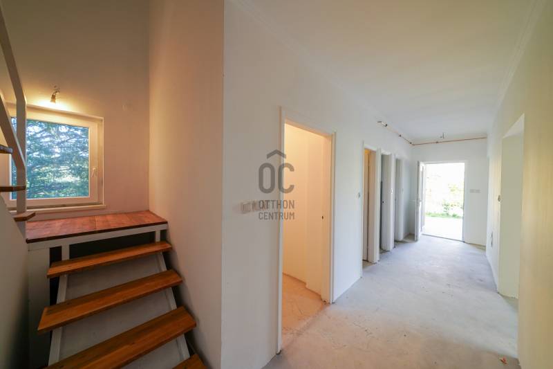 Dél-keleti fekvésű, napfényes otthon Mogyoródon – 136 m²-nyi lehetőség! ????☀️Eladó Mogyoród egyik legcsendesebb, madárcsicsergős utcájában egy nettó 136 m²-es, belső kétszintes családi lakás. Ez az ingatlan tökéletes választás azoknak, akik nem akarnak kompromisszumot kötni a fény és a tér tekintetében, és saját ízlésükre szabnák otthonukat.✨ Miért érdemes ezt az ingatlant választania?Fényárban úszó terek: A Dél-keleti (D-K) tájolásnak köszönhetően a lakás egész nap világos, vidám hangulatú.Modern műszaki alapok: Az összes nyílászáró korszerű műanyag, hőszigetelt üvegezéssel és redőnnyel felszerelve.Személyre szabott fűtés: A földszinten padlófűtés gondoskodik a komfortról. A kazán teljesen korszerűsített, és a tulajdonos a beköltözéskor szerelteti be, így Ön egy vadonatúj, garanciális rendszerrel vághat bele az új életébe.Kandalló lehetősége: A nappaliban kiépített helye van a kandallónak, így a téli estéken élvezheti a lobogó tűz melegét és hangulatát.Burkolja saját ízlésére: Az aljzatbeton kész, de a burkolatok még hiányoznak – így pont olyan parkettát vagy járólapot választhat, amilyet megálmodott!???? Elosztás és kényelem:A ház belső elrendezése ideális nagycsaládosoknak vagy otthoni munkavégzéshez is:4 tágas szoba: Elég hely jut mindenkinek a pihenésre vagy dolgozószobának.2 fürdőszoba: Mindkét szinten található vizesblokk, így elkerülhető a reggeli sorban állás.Kültéri kapcsolat: Az emeleti szobából egy hangulatos erkély nyílik, a házhoz pedig egy 600 m²-es közös használatú kert tartozhat.???? Lokáció – ahol a csend és a város találkozik:HÉV megálló: mindössze 2 perc séta! Budapest központja gyorsan és kényelmesen elérhető.Rendkívül csendes, biztonságos környék, ahol a gyerekek még nyugodtan játszhatnak.Ez az ingatlan nem csak egy ház, hanem egy tiszta lap, amire Ön írhatja fel álmai otthonát!