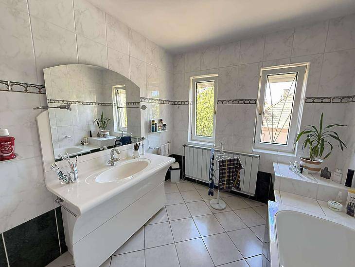 Tágas családi ház eladó Rákosszentmihály–Mátyásföld határán, nagy telekkel! Budapest XVI. kerületében, Rákosszentmihály és Mátyásföld határán, csendes mellékutcában kínálunk megvételre egy 2005-ben épült, kétszintes, körbejárható családi házat, 770 m²-es telekkel.Az ingatlan ideális választás családok számára, akik nyugodt, kertvárosi környezetben, mégis jó közlekedés mellett szeretnének élni.Főbb jellemzők:• 4 szoba + tágas amerikai konyhás nappali • 770 m² telek • 20 m²-es terasz • 1 állásos garázs • duplakomfortos kialakítás Műszaki tartalom• téglaépítés (2005) • masszív szerkezet, betonfödém mindkét szinten • műanyag nyílászárók, hőszigetelt üvegezéssel • réz villanyvezetékek • Bramac cseréptető, 20 cm szigeteléssel • kombi cirkó fűtés • földszinten padlófűtés, emeleten radiátorok ElrendezésFöldszint:• előszoba • amerikai konyhás nappali étkezővel • külön mellékhelyiség • zuhanyzós fürdőszoba • gardrób • mosókonyha • garázs • teraszkapcsolat Emelet:• 3 szoba (egyik igény szerint kettéosztható) • előtér • kádas fürdőszoba • közlekedő Környezet:Csendes, családi házas övezet, barátságos, zöld környezet. A környéken minden fontos szolgáltatás könnyen elérhető.KözlekedésPár perc sétára elérhető buszjáratok: 46, 144, 244, 996Irányár: 219,9 M Ft Finanszírozás:Hitelügyintézésben díjmentes tanácsadással segítünk.A hirdetésben szereplő adatok tájékoztatás jellegűek!