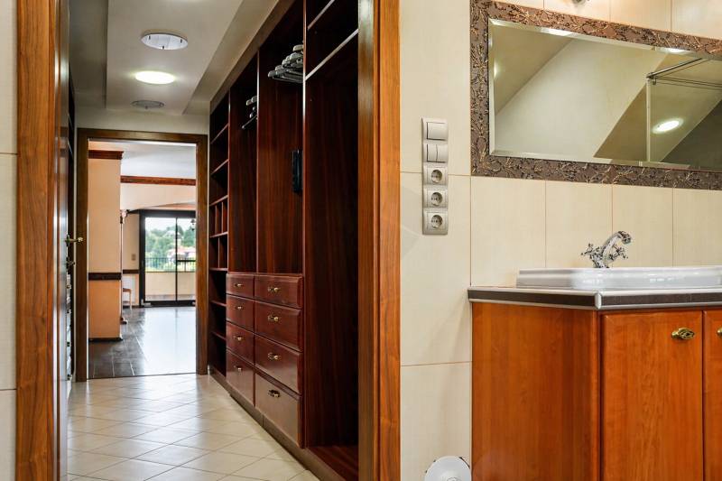 Eladásra kínálunk Szentendre egyik legkedveltebb, presztízsértékű részén, a Bükkös-patak közvetlen közelében egy minden igényt kielégítő, 490 m²-es mediterrán életérzést árasztó luxusvillát. Ez az ingatlan nem csupán egy ház, hanem egy életstílus: a 180 fokos, lélegzetelállító körpanoráma, a tágas terek és a csendes, 1837 m²-es parkosítható telek a nyugalom szigetét teremthetik meg az Ön számára.Miért válassza ezt az ingatlant?ALKALMI VÉTEL!!! Ár-érték arányban egyedülálló a piacon: ilyen ingatlant ennyiért nem kap!Lenyűgöző terek és funkcionalitás: A 4 szinten elhelyezkedő, 9 szobás villa ideális nagycsaládosoknak vagy több generáció együttélésére is. A szinteltolásos megoldások és a hatalmas üvegfelületek gondoskodnak arról, hogy az otthon minden szeglete fényárban ússzon.Wellness az otthonában: A pinceszinten található beltéri medence és a hozzá tartozó kiszolgáló helyiségek a mindennapi kikapcsolódást szolgálják.Gasztronómia és hangulat: A ház ékköve a 80 m²-es, autentikus borospince kemencével, amelyhez közvetlen teraszkapcsolat tartozik – tökéletes helyszín családi és baráti összejövetelekhez.Csúcstechnológia és hatékonyság: Az ingatlan energetikailag is jövőálló. A fűtésről hőszivattyú (Geo tarifa) és gáz-cirkó gondoskodik (padlófűtéssel és radiátorokkal), a nyári hűvöset pedig helyiségenként szabályozható Fischer klímarendszer biztosítja. A napelem telepítése előkészítve!Exkluzív felszereltség:Beépített Miele konyhagépek a gasztronómia szerelmeseinek.Központi porszívó és rejtett világítástechnika.Elektromos redőnyök és biztonsági üvegezés a maximális kényelemért és védelemért.Összesen 100 m²-nyi terasz és erkély, ahonnan a szentendrei panoráma minden napszakban más arcát mutatja.Kert és Parkolás:A hatalmas, sík, füvesített terület kiválóan alkalmas játszótérnek, labdajátékokhoz vagy akár egy elegáns kerti partinak is. A parkolásról egy önálló garázs és egy kétkapus, utcai beálló gondoskodik.Lokáció:Csendes, természetközeli környezet, mégis kiváló infrastruktúra: a belváros percek alatt elérhető, a buszmegálló (több járattal) mindössze 2 perc séta.Irányár: 224.999.000 FtAz ingatlan jelenleg üres, tehermentes, így azonnal birtokba vehető. A kulcs nálunk van, így rugalmasan megtekinthető!Ne maradjon le erről az egyedülálló lehetőségről, hívjon bizalommal és tekintse meg személyesen leendő álomotthonát!