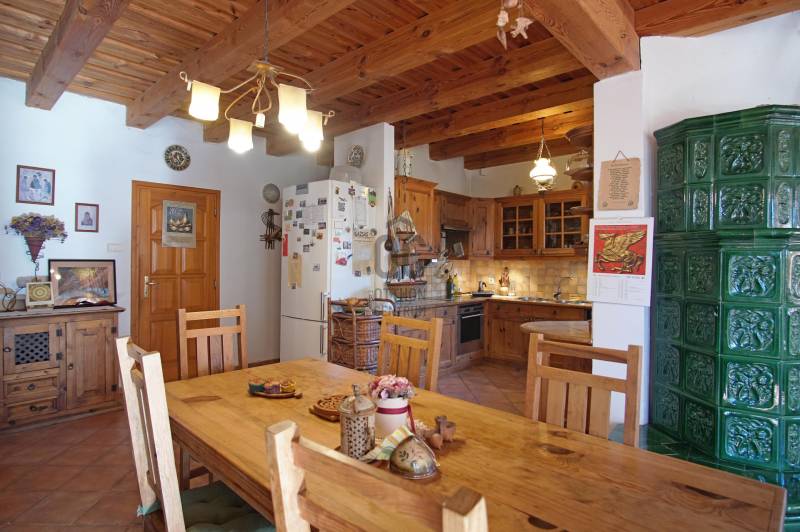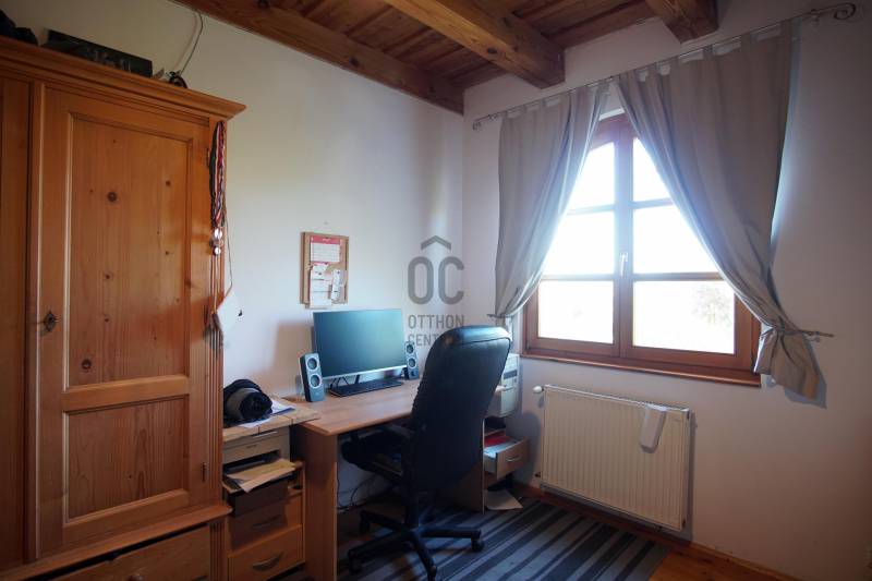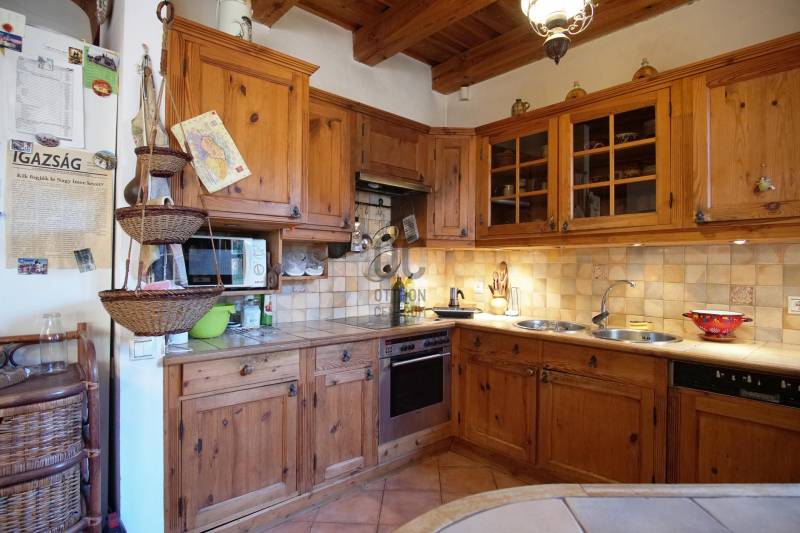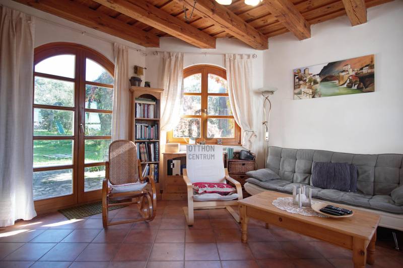 \"Vintage\" hangulat Tinnye központjában. Az önálló családi ház , 2000-ben épült, téglafalazatú . Az ingatlan jelenleg 7 szoba + 2 nappali, 130 nm alapterületű, 2 nagy terasszal rendelkezik. A tetőtérben egy további, 130 m2-es lakrész található, melynek egy része még befejezésre vár .A házba az első teraszon keresztül, az előszobába érkezünk meg, innen nyílik a többi helyiség: a nappali + étkező+ konyha , a kamra, a hálószobák, és a fürdőszoba. A hideg és a meleg burkolatok is a vidéki hangulatot fokozzák az ingatlanban. Gépesített konyha, zuhanykabinos fürdőszoba, plusz egy kádas fürdőszoba került kialakításra. A szobák burkolata hajópadló. A nappaliban nagyon hangulatos cserépkályha került megépítésre, mely nem csak egyedi megjelenésű, de télen a ház fűtéséről is gondoskodik. A nappaliból közvetlenül mind a két 12 nm-es, részben fedett teraszra és a kertbe léphetünk ki.Fűtés gázcirkóval megoldott, padlófűtés, a szobákban pedig radiátoros fűtés.A KERT:A kert hangulatos, teraszos kialakítású tele zöld növényekkel, örök zöldekkel, tarka virágokkal. A kertben pihenő sziget is helyet kapott, ahol grillezhetünk, sütögethetünk és fogadhatjuk a vendégeinket minden évszakban.A kertben van hely akár egy télikert kialakításra, illetve egy kisebb medence/jakuzzi elhelyezésére is. A kerti szerszámok elhelyezése a kert végében egy hangulatos kis tégla ház ad teret. Jelen kialakítás szerint nagy családoknak jó szívvel ajánlom. A tetőtér befejezését követően 2-3 generáció együtt élésére is meghitt családi otthon lehet az ingatlan. Iskola, óvoda, bevásárlási és sportolási lehetőségek elérhetőek néhány perces távolságban.Jöjjön el, nézze meg a házat, érezze a helyszínen is, hogy ez a vidéki hangulatú ház akár lehet az álmai otthona!