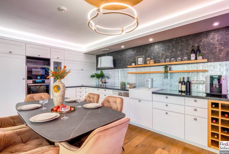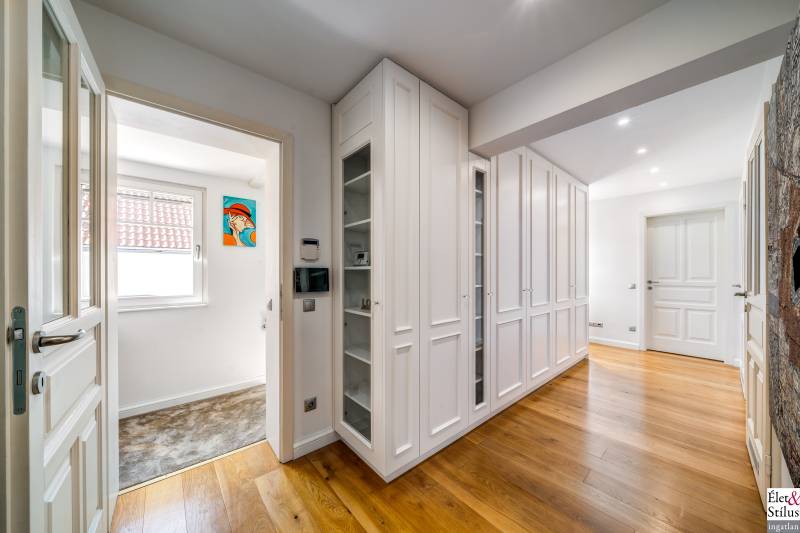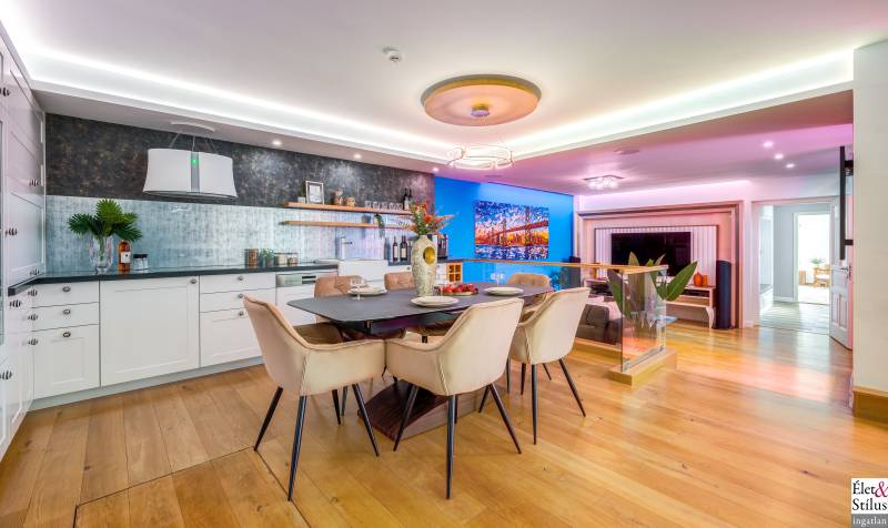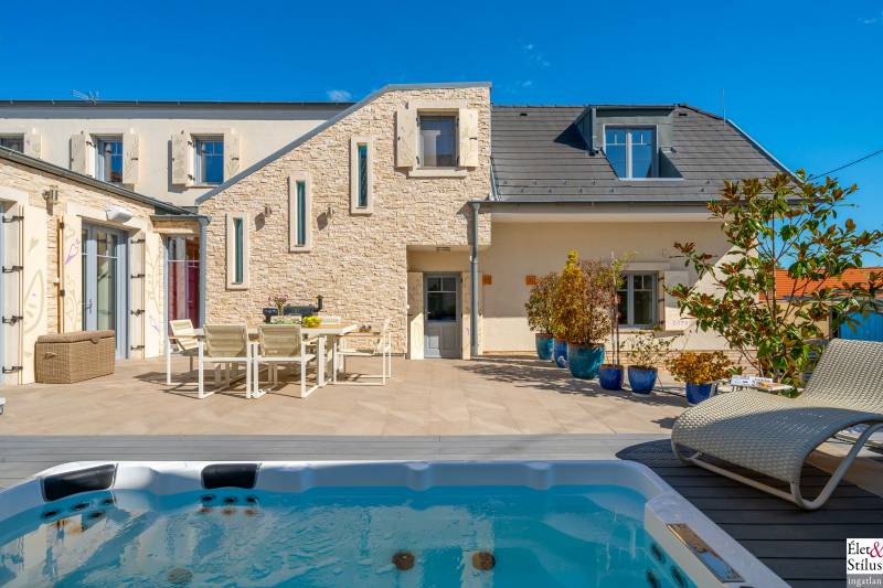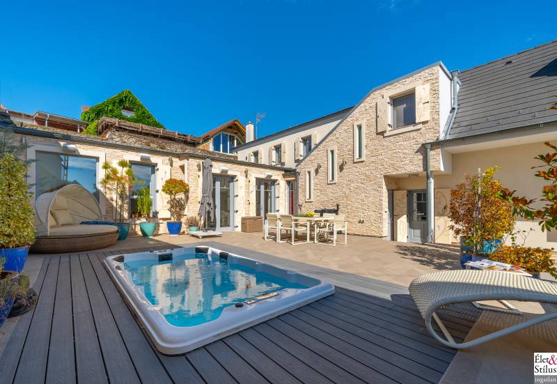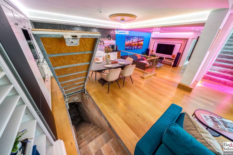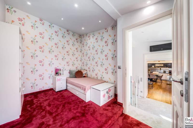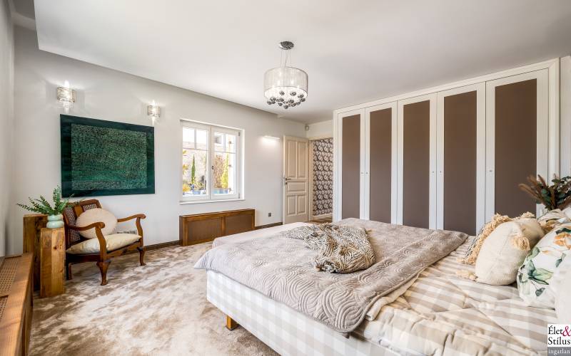 Ékszerdoboz Szentendre Óvárosában!Panoráma a Dunára!Modern? Izgalmas? Színes? Vidám?Igen!!! Ha mindezt szereti, megtalálta új otthonát!Szentendre Óvárosának egy kis csendes utcácskájában eladó egy kétszíntes, 200 nm-es, 5 szobás, 3 fürdőszobás, minőségi, családi ház.Gyalogos bejáratunkon belépve vagy kétszárnyú garázskapunkon behajtva, 450 nm-es intim kertünkbe érkezünk, amelyben 6-8 személyes, medencének beillő nagyságú jakuzzing, kis szaunaházunk és napozóágyunk fogad.Házunkba belépve, előszobánkból jobbra található, hatalmas, 20 nm-es hálószobánk, fürdővel és mellékhelyiséggel.Balra, lenyűgöző, szinteltolásos, ultramodern, nappali-konyha-étkező került kialakításra.A nappaliból egy hidralikus szerkezet segítségével, \"titkos\" lejáraton, lépcsőn keresztül, \"rejtett\" borospincénkent fedezhetjük fel.Tovább haladva, L alakú otthonunkban elfordulva, két gyerekszoba, fürdőszoba és tároló vár minket.Fényárban úszó, színkavalkádban játszó, üvegfalú lépcsönkön felfelé haladva jutunk tetőterünkbe, ahol közlekedőnkből, felső szintünk két oldalán, két hálószobánk, középen fürdőszobánk, mosokonyhánk és kazánházunk lett kiépítve.Extrák tekintetében, pazar panorámás, Dunára néző kilátásunk páratlan.A már említett extra minőségű kivitelezés, az ötletes megoldások, jakuzzis medencénk, szaunaházunk, ablakainkon spalettnik, 15 cm-es szigetelésünk, mind mind növelik komfortérzetünket, a mesés utcácskánkban található házikónkban.Lokáció tekintetében is el vagyunk kényeztetve, hiszen pár perc sétára a Dunapart, Szentendre sétálóutcái, éttermei, jelegzetes forgataga.Mind a HÉV, mind autónk használatával, a tökéletes infrastruktúrának köszönhetően, fél órán belül Budapest szívében találhatjuk magunkat.Irányár: 348 millió forintSzaka József +36 30 691 0908 Élet&Stílus IngatlanirodaTovábbi ingatlanokat a honlapunkon talál: eletstilusingatlan huENERGETIKAI TANÚSÍTVÁNY (zöldkártya ingatlanhoz)2012. január 1.-től a használt lakások adásvételénél is kötelező! Hívjon! Elkészítjük Önnek!ÜGYVÉD-0,7%Megbízható ügyvédre van szüksége? Irodánk ügyvédje a vételár 0,7 %-ért elkészíti az adásvételi szerződését. Ha kínálatunkból vásárol, akkor még ennél kedvezőbb is lehet ez a díj.LAKÁSBIZTOSÍTÁSIngatlant vásárolt? Vagy a régi biztosítását lecserélné? A Magyarországon tevékenykedő összes biztosító ajánlatai közül kiválasztjuk Önnek az árban és a szolgáltatás minőségében a leginkább megfelelőt. Mindezt teljesen ingyen.HITELCégünk hiteltanácsadója - a velünk leszerződött - Magyarországon található összes bank ajánlata közül megtalálja Önnek személyre szabottan a legjobbat!LAKBERENDEZÉSNincs ötlete, hogy mit lehetne kihozni a lakásából, hogyan lehetne újjá varázsolni? Mi segítünk Önnek!LAKÁSFELÚJÍTÁSMegbízható szakemberre lenne szüksége a lakásfelújításhoz? Nálunk megtalálja!