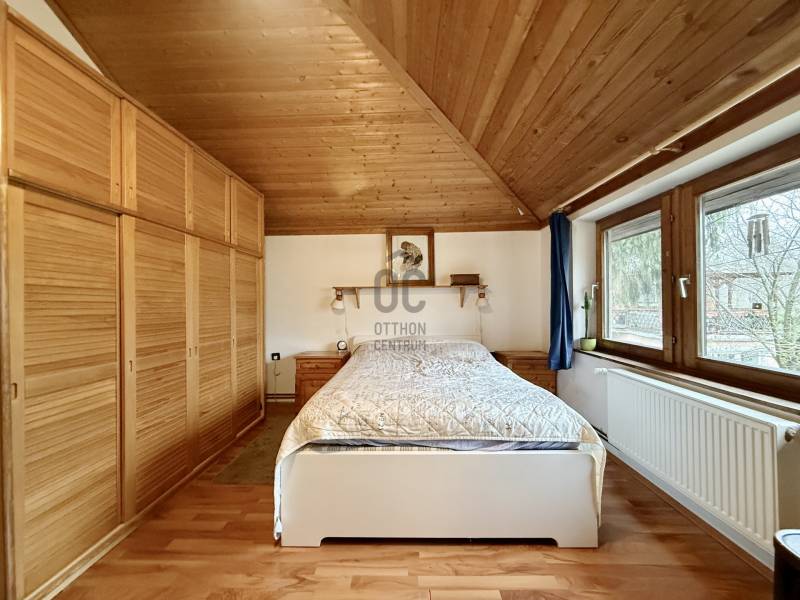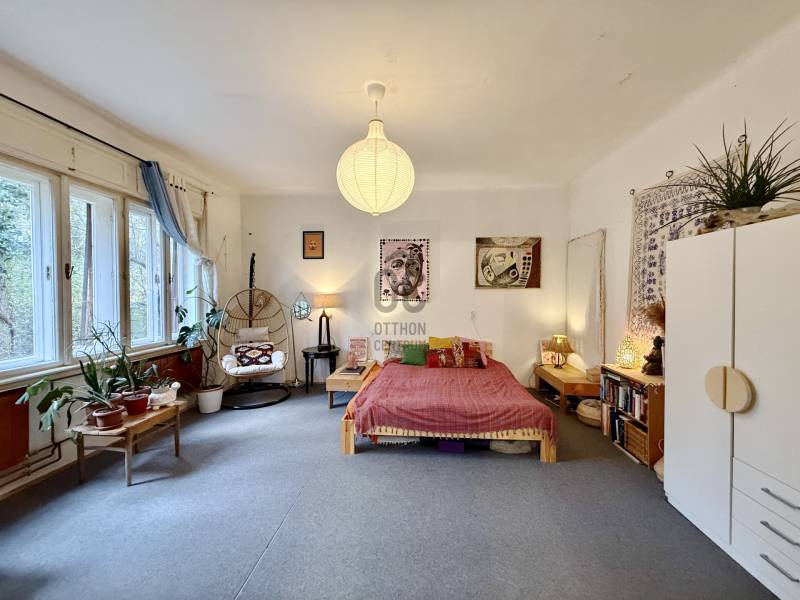 Kertvárosi, zöldövezeti környezetben keresi új tulajdonosát egy kétszintes, két külön lakrészre osztott, külön bejáratokkal rendelkező családi ház Máriaremetén. Ideális választás lehet nagyobb családok számára vagy akár két generáció együttélésére is – úgy, hogy a privát szféra is megmarad. Ha egy 6 szobás, 2 fürdőszobás, jó elrendezésű és kifejezetten hangulatos otthont keres kényelmes méretű kerttel, ezt az ingatlant mindenképp érdemes megnéznie!KÖRNYÉK ÉS KÖZLEKEDÉS:- Budapest II/A. kerülete, Máriaremete és Hűvösvölgy határán, természetközeli hangulattal.- Csendes, levegős, zöldövezeti karakterű, családi házas környezet, mégsem elszigetelt.- Ez a lokáció jellemzően autóval kényelmesebb, viszont tömegközlekedéssel is jól használható.- A környéket az 57-es, 157-es és 257-es buszok szolgálják ki, amik Máriaremetét kötik össze Hűvösvölggyel.- A buszmegálló 5 perces séta, villamos megálló 15 perc gyalog, a belváros 15–20 perc alatt elérhető. - Hűvösvölgy irányában pár perc alatt bevásárlási lehetőségek, üzletek és több alapvető szolgáltatás is könnyen elérhető.- A terület a napi ügyintézés és alap szolgáltatások szempontjából jól ellátott, elérhető egészségügyi háttérrel.- Kerületi szinten erős a családos infrastruktúra, óvoda, iskola 5–10 perces távolság.- Az aktív életet élőknek ideális, a közelben játszótérrel, futókörrel, kültéri fitnesz-parkkal és több sportolási lehetőséggel kialakított közösségi liget is elérhető.- A környék egyik nagy előnye a kirándulóhelyek és zöldterületek közelsége, például a Remete-szurdok.AMIT A HÁZRÓL FONTOS TUDNI:- 769 m²-es, gondozott telken lévő 200 m2-es, 2 szintes, 6 szobás, jó állapotú téglaépület.-Tetőszerkezete ellenőrzött, új lemezfedéssel és 10 cm kőzetgyapot + 5 cm hungarocell szigeteléssel rendelkeznek.- A ház két szintje jelenleg külön lépcsőházból közelíthető meg, de igény esetén egybenyitható.- Mindkét szint külön közműórákkal rendelkezik (víz, gáz, villany) így akár két teljesen külön lakásként is használható.- Tájolása dél-nyugati, a nagy ablakoknak köszönhetően a lakásokban jók a fényviszonyok.- Az épület alatt 60 m2-es, előtérből és 2 egymásból nyíló helyiségből álló száraz pince van, ami külön lakrész kialakítására is alkalmas.- A kert és a pihenőrész különleges hangulatát két hatalmas fenyőfa határozza meg. - A terület mérete miatt alkalmas még terasz, konyhakert és játszótér kialakítására is.- Az udvar több autó beállására alkalmas helyet biztosít, két állásos garázs is kialakítható.ALSÓ SZINT:- 1940-es években épült, alapterülete 98 m².- Felosztása: 3 szoba, konyha-étkező, fürdőszoba WC-vel, gardrób helyiség, lépcsőház.- Egyedi kialakítású otthon, jelenleg műterem + lakás funkcióval használják.- Fűtését 2 éves gáz cirkó kazán, a hő-leadást radiátorok biztosítják.- Állapota átlagos, lakható, de esztétikai és műszaki frissítést is igényel.FELSŐ SZINT:- 1990-es években, tetőtér beépítéssel épült, alapterülete 100 m².- Felosztása: nappali, 2 szoba, konyha-étkező, kamra, fürdőszoba, külön WC, lépcsőház.- A belmagasság itt 3,5 m, ami nagyon tágas térérzetet biztosít.- Az ablakok fa szerkezetű, szigetelt nyílászárók.- Fűtését 10 éves gáz cirkó kazán, a hő-leadást radiátorok biztosítják. - Esztétikai és műszaki állapota jó, rendszeresen karbantartott.AZ INGATLAN MEGTEKINTHETŐ:- Személyesen, előre egyeztetett időpontban.FINANSZÍROZÁSI KÉRDÉSEKBEN– ONLINE IS – SEGÍTÜNK- Bank-független hitelcenterünk díjmentesen versenyezteti az összes bank és hitelintézet ajánlatát.- Önnek csak annyi a dolga, hogy egyeztet munkatársunkkal, majd kiválasztja a hosszú távon is legkedvezőbb konstrukciót.- Szakértőink 20 év tapasztalattal, fogyasztóbarát lakáshitelekkel, babaváró hitellel és teljes körű CSOK Plusz és OTTHON START program ügyintézéssel várják.- Időpont-egyeztetéssel munkaidő után is elérhetők.Jó szívvel ajánlom zöldre, nyugalomra, kertre vágyó családoknak, vagy két generáció igényes együttélésére lehetőséget keresők részére. További információkért és megtekintési időpontért keressen bizalommal!
