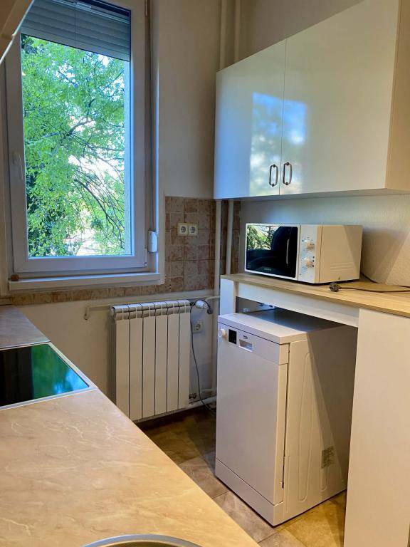 Családi házas övezetben kiadó ez az Első emeleti, társasházi lakás. Nem zsúfolt, szinte egyedül áll ez a ház itt és egy nagy, zöld park van előtte.Két külön életvitelű személy számára is alkalmas, mert a két szoba teljesen szeparált egymástól.A háznak külön elkerített kertje van, így csak az itt lakók tudnak ide bejönni.Az erkély jó méretű, fedett és árnyékoló is van, ha nem lenne elég a lakások előtti fák lombjainak árnya. És kamra is van a lakáshoz, ami be is van polcozva, és rengeteg mindent képes elnyelni.A lakás felújított, ragyogó napfényes (a konyha és a fürdő is), ráadásul csodás fák zöldítik minden irányból.Mindkét szobában klíma van, nyílászáróit pedig nemrég cserélték, és minden ablakra tettek szúnyoghálót is.A beépített konyhabútor a lakás tartozéka (mosogatógép és mikró is van), a bútorok pedig, amik a képen láthatóak igény szerint maradhatnak, amennyiben van saját, el is tudjuk vinni őket. (hűtő, mosógép nincs)Rezsi:- KKtg.: 7.000 Ft/hó + 2.500 Ft/hó a szemétszállítás,- Távhő: 11.600 Ft/hó (télen-nyáron),- Ezen kívül a vizet és a villanyt kell még fizetni fogyasztás alapján.A környéken ingyenes a parkolás és mindig van hely, mert jellemzően családi házak épültek erre, a környék pedig nyugalmas, biztonságos.A buszmegálló pedig 150 méternyi sétatávolságra van, amit egy kimondottan szép utcán kell megtenni, ha tömeg közlekedést választja.