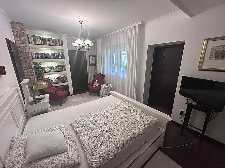 GÖDÖLLŐN, HARASZT VÁROSRÉSZEN ELADÓ EGY 220 NM-ES ÖNÁLLÓ CSALÁDI HÁZ, 1437 NM TELEKKEL.1980 körül épült, téglából, beton alappal.A tető kialakításának köszönhetően, további egy emelettel bővíthető a ház lakóterülete. 2013-ban teljeskörű felújításon esett át, amikor felújították a víz- gáz- villanyhálózatot. A nyílászárókat hangszigetelt műanyag ablakokra cserélték. 10 cm szigetelést kapott a homlokzat. Az összes helyiség új burkolatokat kapott. A nappaliban és a szobákban parketta került lehelyezésre, míg a többi helyiség járólapos. Hűtő-fűtő klímákkal és kandallóval rendelkezik a ház. Fűtését Sanuier Duval álló gázkazán, a melegvizet vezérelt áramon elektromos bojler biztosítja. Szuterén szinten kialakításra került egy padlófűtéses, klímás irodahelyiség de ez a terület egyéb felhasználásra is alkalmas. 20 nm-es garázs tartozik az ingatlanhoz.A telken található még egy melléképület amely lakásként van kialakítva. Öntözőrendszerrel rendelkezik a telek.KIALAKÍTÁS:Földszint:Előszoba, étkezős konyha ,2 szoba, mosókonyha, zuhanyzó+mellékhelyiség, külön zuhanyzó, külön mellékhelyiség, gardróbszoba, fedett teraszkapcsolat.Szuterén:Gépészet, iroda, váró, teakonyha, zuhanyzó+ mellékhelyiség, tároló, garázs Melléképület:2 szoba, zuhanyzó+ mellékhelyiségKÖRNYÉK:Gödöllő csendes mellékutcájában található. Közelben bevásárlás, gyógyszertár, óvoda elérhető.M3-as autópálya pár perc, 12-es, 327-es, 396-os, 402-es 412-es, 413-as, 416-os, 422-es, 432-es, 442-es, 450-es, 451-es, 452-es, 454-es, 455-ös, 1076-os buszok a közelben.IRÁNYÁR: 166,9 M FTVEVŐINK RÉSZÉRE A KÖZVETÍTÉS DÍJTALAN!A hirdetésben szereplő adatok tájékoztató jellegűek.